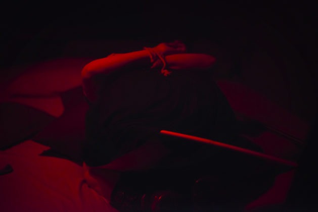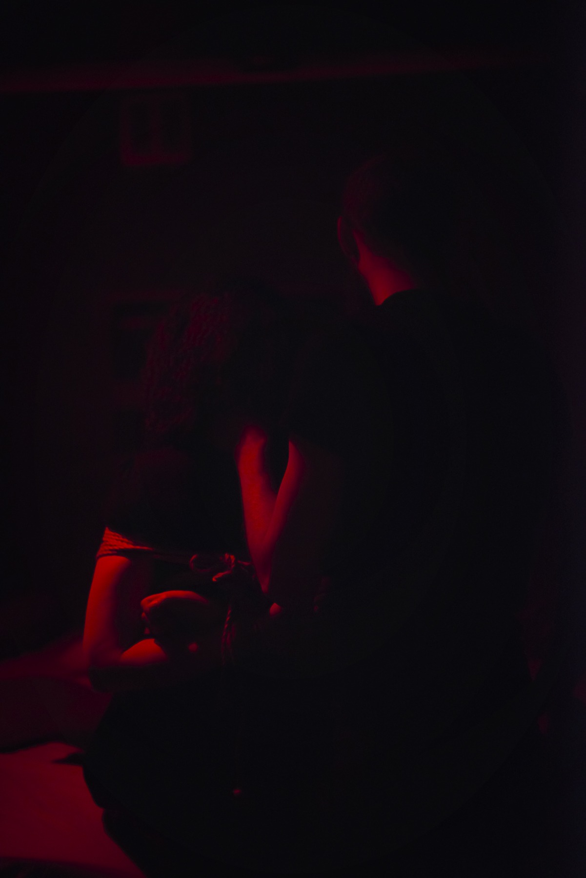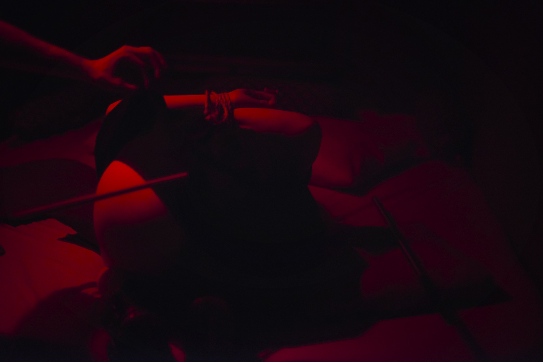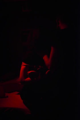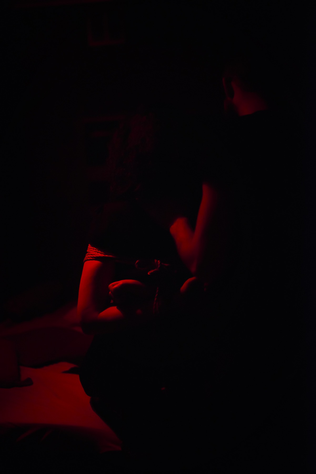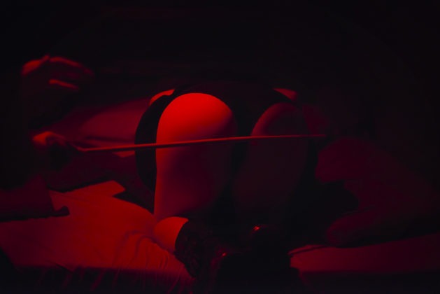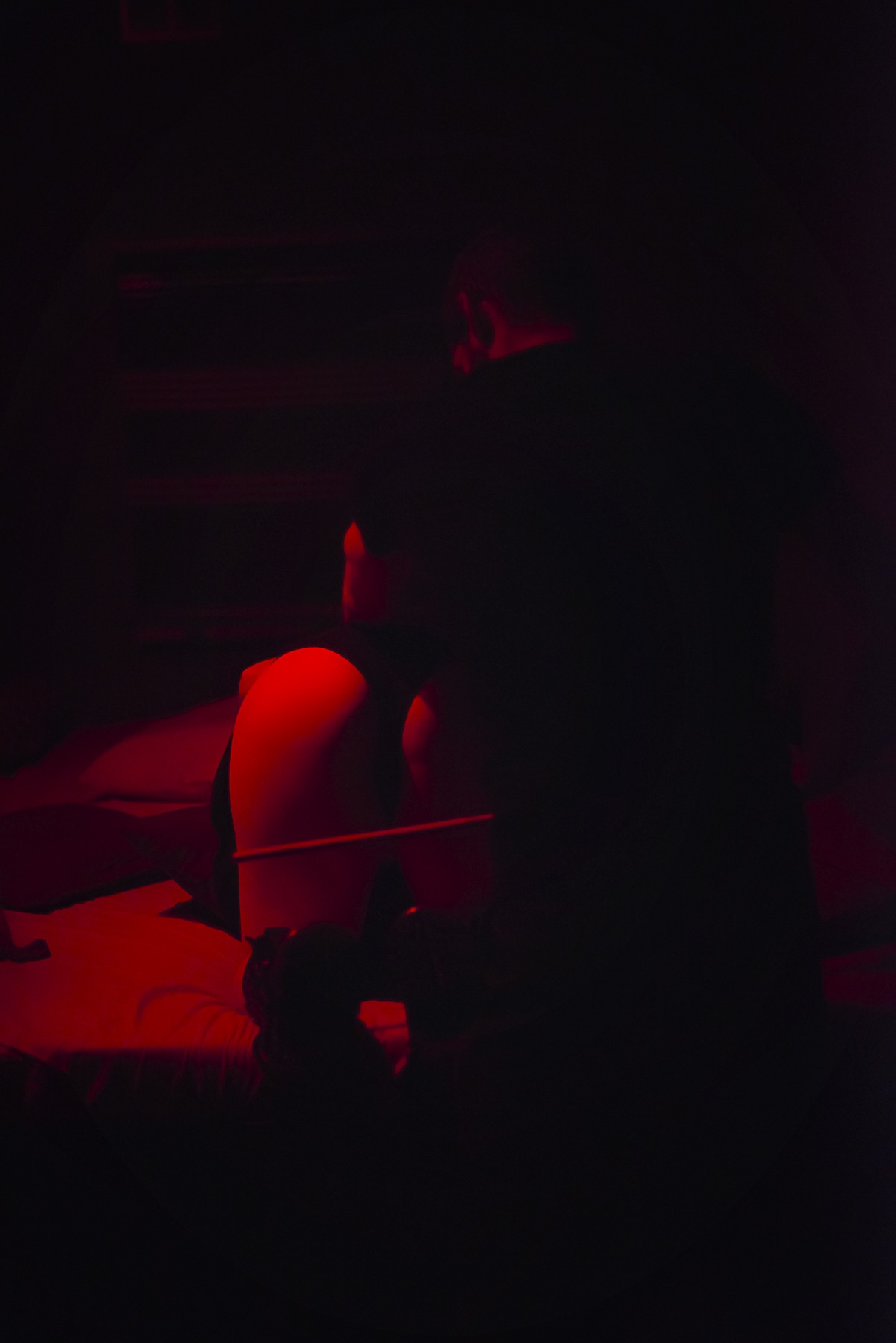 Florian nous fait une démonstration de son art du maniement de la cane sur le fessier de L.