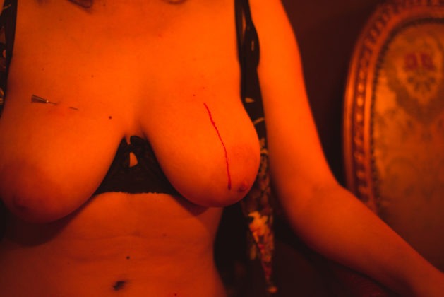 Lil Devil a bravé ses peurs et s’est laissée infibuler lors de l’atelier aiguilles du Kinky Club proposé par DirtyVonP .
