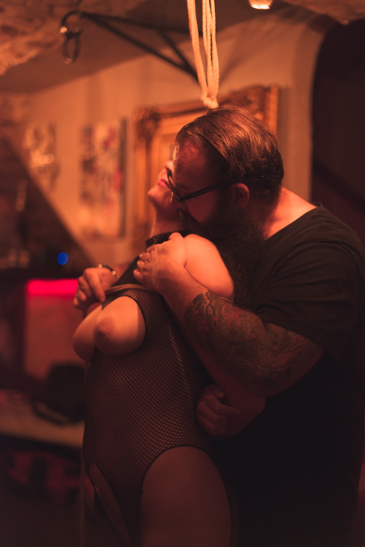 Ф хотела хорошего сеанса кинбаку. Она не разочаровалась… Её выставили в большой комнате, сначала подвешенной за грудь. В конце концов, её перевернули, неприлично, и она оказалась на полу, медленно опускаясь от своих эмоций, стоя на коленях в экстазе.